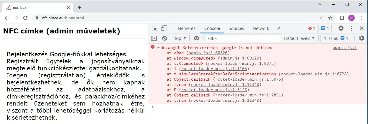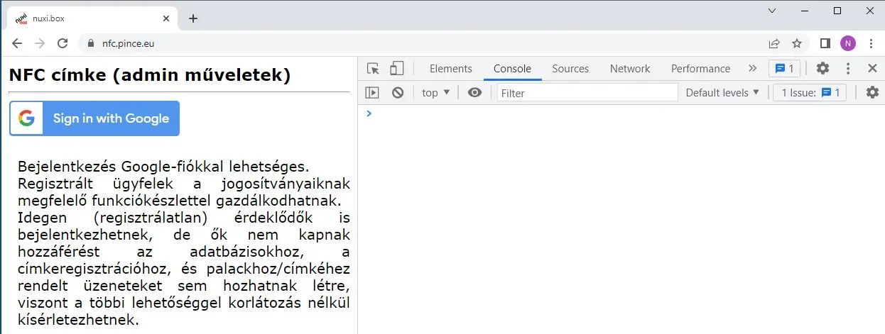 Ezért nem jelenik meg a Google Sign-In button, és így válik elérhetetlenné az NFC-admin szolgáltatás, hiszen igénybevételének előfeltétele az ügyfél azonosítása.