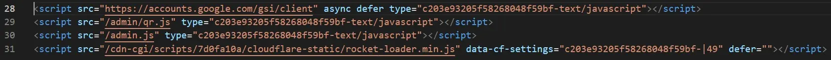 A Rocket Loader™ hatására a fenti példa 28-as sortól kezdődő kódrészlete a következőképpen töltődik be a böngészőbe, miután a Cloudflare szája íze szerinti "fűszerezést" röptiben megkapja: