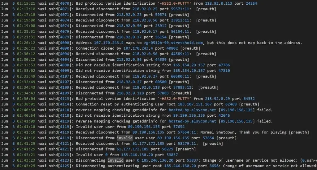 2023 júniusában három nap alatt kereken 3500 sorral hízott a felhasználói hozzáféréseket naplózó auth.log, most meg a legutóbbi tíz nap alatt 71 ezer sor jött össze.