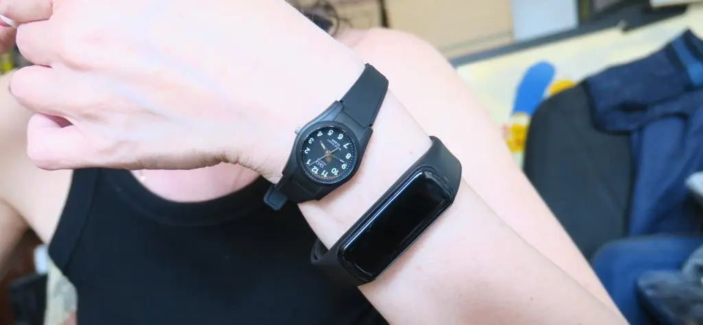 Jól megférnek egymás mellett a különböző szemlélet és technológia szerint készített, csuklón hordható szerkezetek. Az okos karkötő 21 grammjához a klasszikus darab 12 grammot ad hozzá, míg a régi, fémszíjas női óra önmagában 55 grammot nyomott – kényelmesen hordható az együttes.