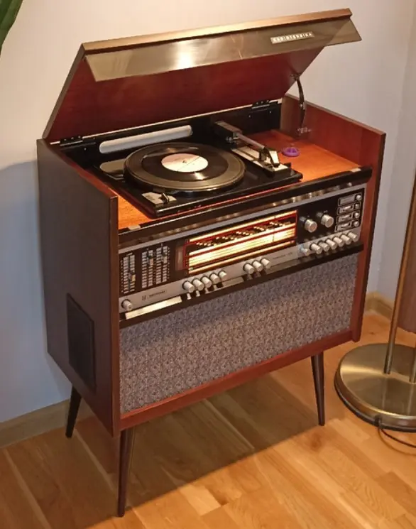 A lemezjátszó, rádió, erősítő és hangszóró egybeszerelt kivitelét rendre kiegészítették az éppen időszerű fejlesztésekkel, így került bele előbb magnetofon, majd CD-lejátszó, s eközben az elektroncsöveket félvezetőkre, a potmétert pedig rotary encoderre cserélték.